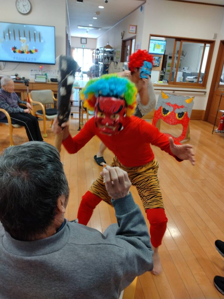 今年は1月ごろから節分会用の「豆まきで鬼を退治しよう!ゲーム」の貼り絵をご利用者様と作成していました!!
