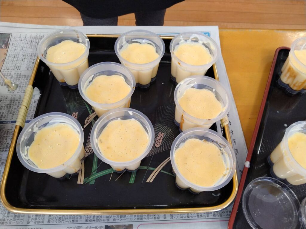 お菓子作りで作った「プリン」に生クリームを乗せて…